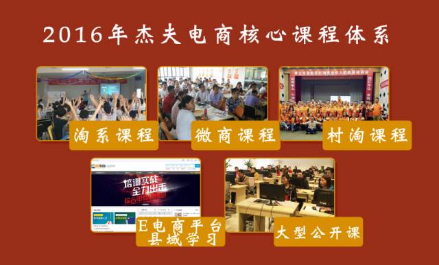 2016年杰夫电商“万千百十”县域电商人才培训计划已在全国铺开,并开展了200多场培训,10多场创业大赛,培养了30000多个县域人才。主要的课程有:电商孵化课,提升班,公开课、微商课、村淘、农产品等新培训项目不断升级。
