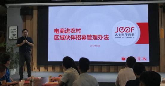 2017年7月2日,由杰夫电商集团主办的“电商进农村服务3.0”发布会,在杭州电商服务基地隆重召开。此次“以上行为核心,以结果为导向”的农村电商服务升级会议,吸引了60多名来自全国各地的意向合作伙伴,会议现场举办了部分区域合作伙伴战略合作签约仪式。